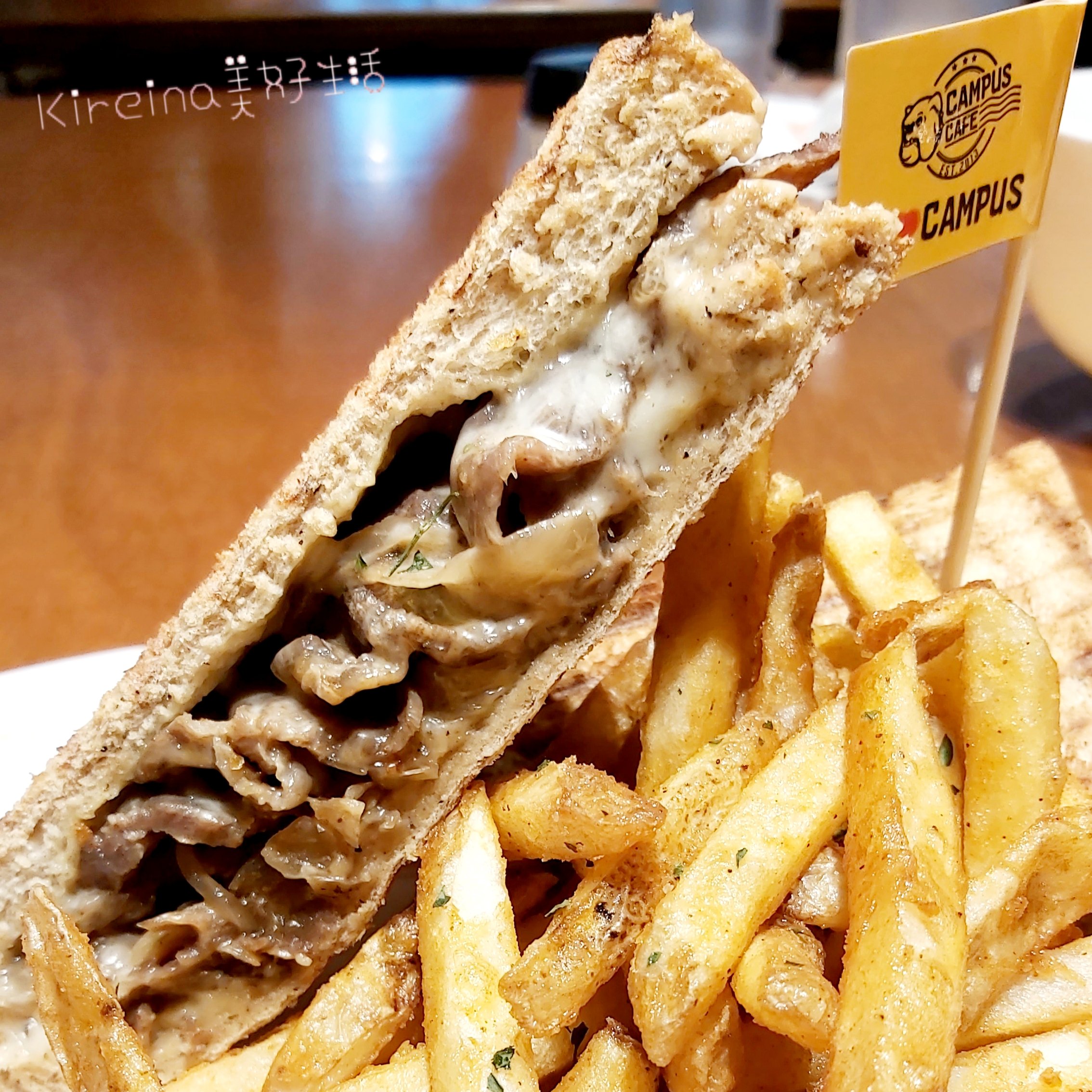 - 費城起司牛肉帕尼尼 Philly Cheese Steak Panini $200元+脆漿薯條 $60