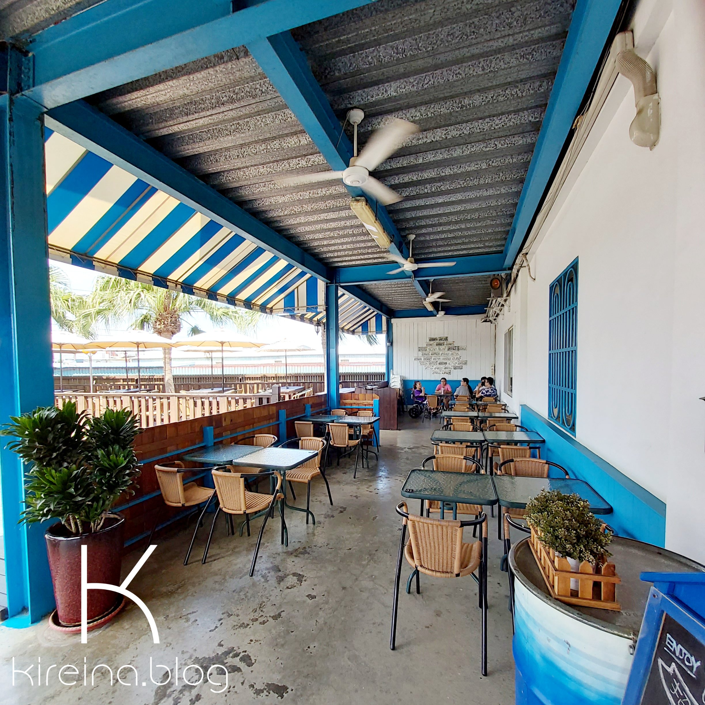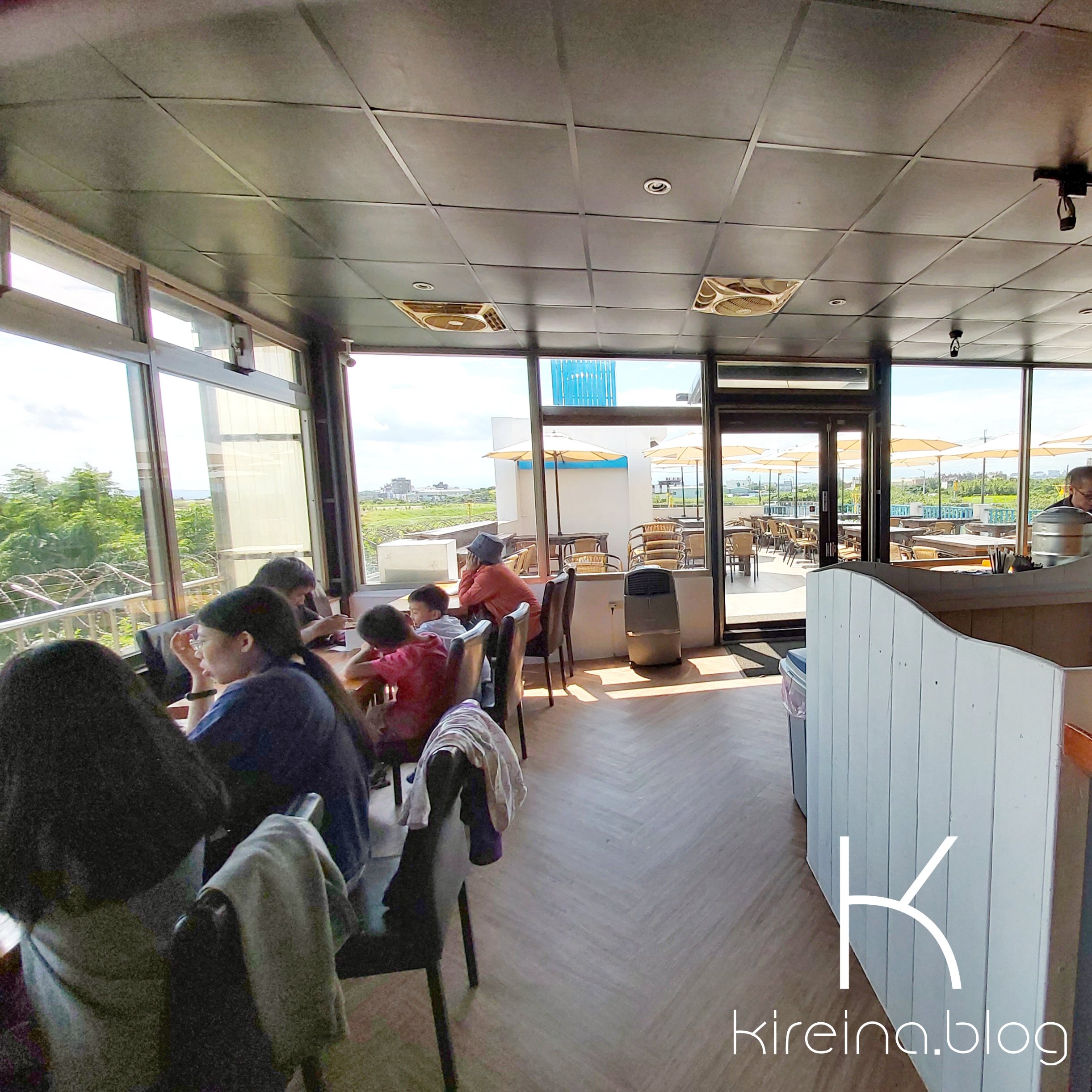 2樓室內區的坐位不多,在這麼熱的天氣,日頭赤焰焰,說要在戶外日光浴晒太陽製造多一點維生素D,怕也是坐不了10分鐘,就馬上大汗淋漓地晒昏頭了。如果想要享受自然風,建議是傍晚日落時分之後再坐戶外,不然還是早點來,選擇坐在室內吹冷氣,看著落地窗外的飛機起飛,這樣比較浪漫些。