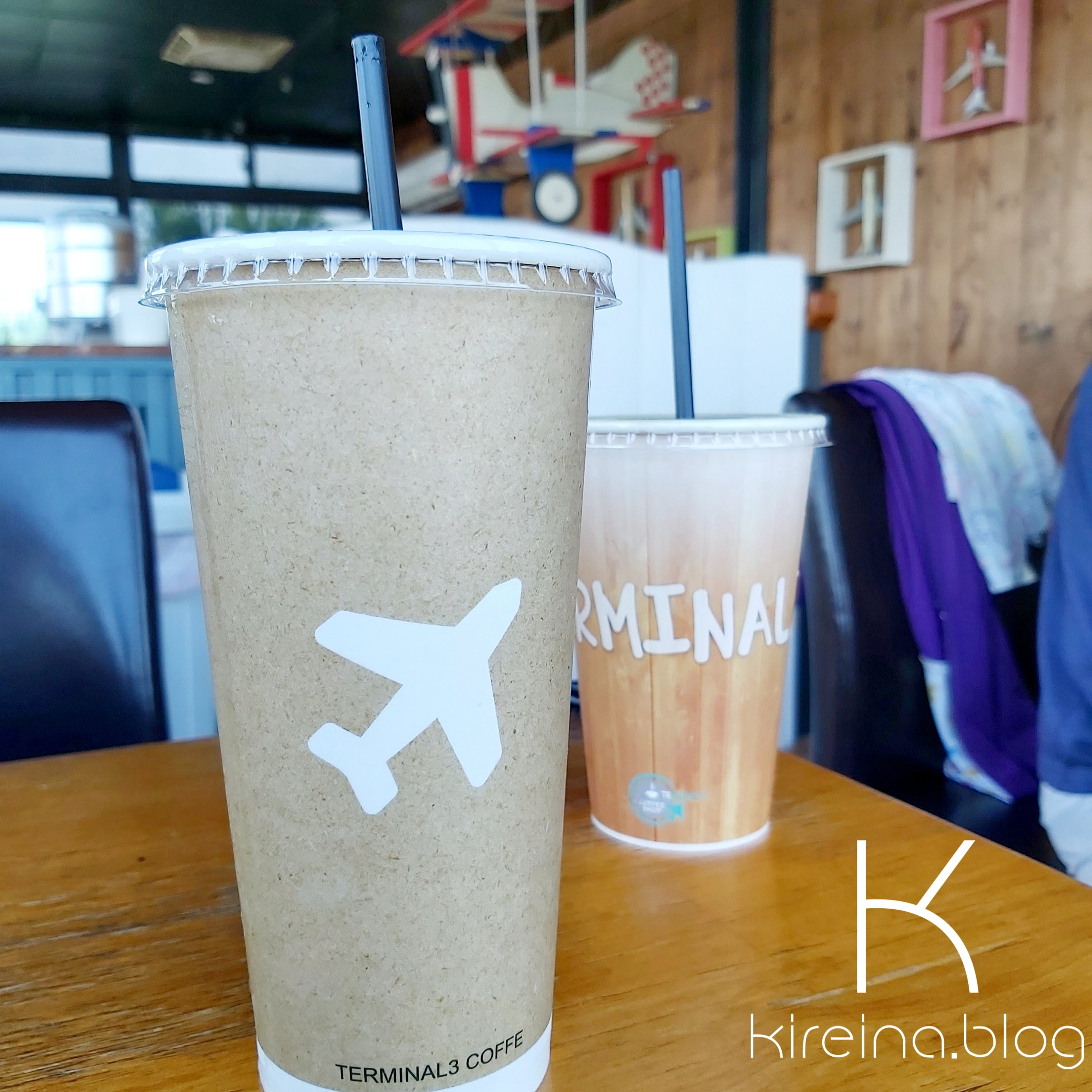 第三航廈的飲品價格帶,從$100~$160元都有。咖啡及冰沙約是$140元左右,奶茶跟可可約是$120元左右。每個人點1杯飲料,就可以滿足低消限制。跟鬆餅相比,飲料上桌時使用紙杯…這點倒是滿讓人失望的,畢竟是在店內享用,如果使用的是襯景的馬克杯…之類的,感覺會更好。