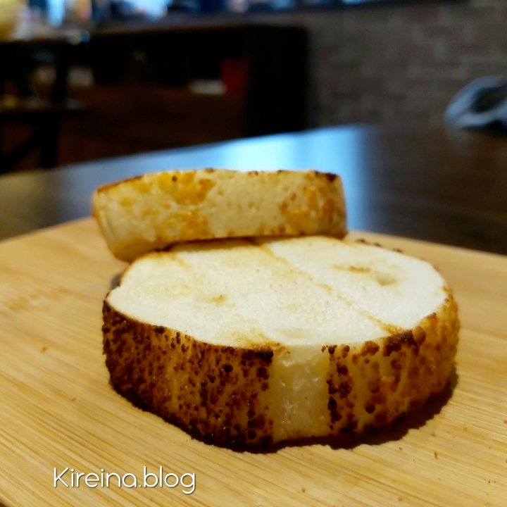 剛開始,鱗片的外觀讓人有點入口障礙,實際品嚐後,發現口感比想像中爽脆,讓魚排吃起來更有口感層次,真的也是第一次吃到這樣處理的魚。吃到這一道,真的已經有點飽了。